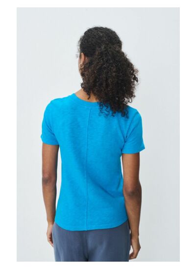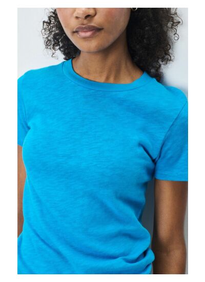 Comment est la coupe de ce t-shirt ? Il présente une coupe ajustée et près du corps, conçue pour mettre en valeur la silhouette féminine tout en restant confortable grâce à son élasticité naturelle.