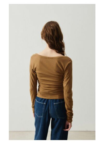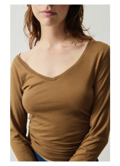 Nouveau basique des collections American Vintage, le t-shirt manches longues Xoubow avec son col V offre un style moderne et décontracté. Fabriqué dans un jersey fin et léger, il offre un confort optimal tout en ajoutant une touche d'élégance discrète à chaque tenue.
