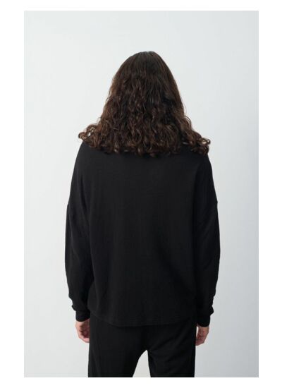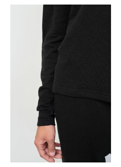 Comment est la coupe du t-shirt ? Le t-shirt présente une coupe droite avec des manches longues et des emmanchures basses, pour un style simple et élégant.