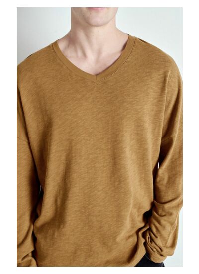 Comment porter le t-shirt Sonoma pour un style réussi ? Sa coupe oversize et son col en V permettent de le porter seul lors des beaux jours ou sous une chemise en jean pour un look décontracté et tendance.