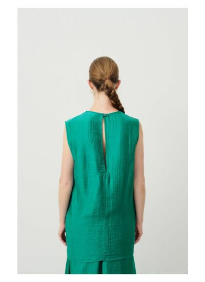 Comment porter le top Detown ? Sa coupe droite et son col rond sans manches en font un modèle polyvalent, idéal à associer avec une jupe, un pantalon ou un jean pour une tenue élégante en toute occasion.