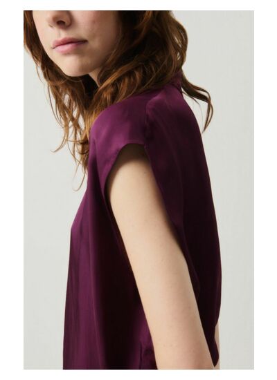 Quelle est la composition et le ressenti de la matière ? La matière brillante et fluide offre une sensation légère et agréable sur la peau, mettant en valeur le mouvement tout en assurant un tombé élégant et moderne.
