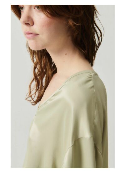 Peut-on associer ce top avec d’autres styles ? Sa coupe ample et sa matière satinée en font une pièce versatile qui se marie aussi bien avec un pantalon tailleur pour un look sophistiqué qu’avec un jean pour une allure décontractée et stylée.
