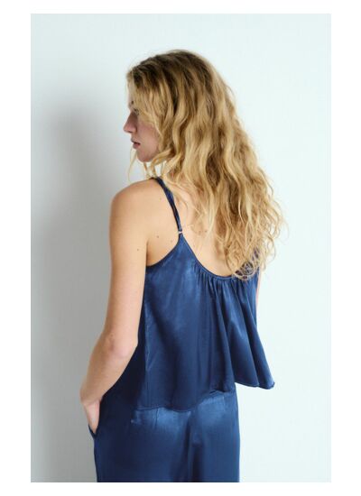 Avec sa matière fluide et lumineuse, le top Voogy apporte féminité et légèreté à votre look. Il se porte aussi bien avec un jean, pour jouer sur l'effet "lingerie", qu'avec le pantalon de la même famille pour un total look sophistiqué.