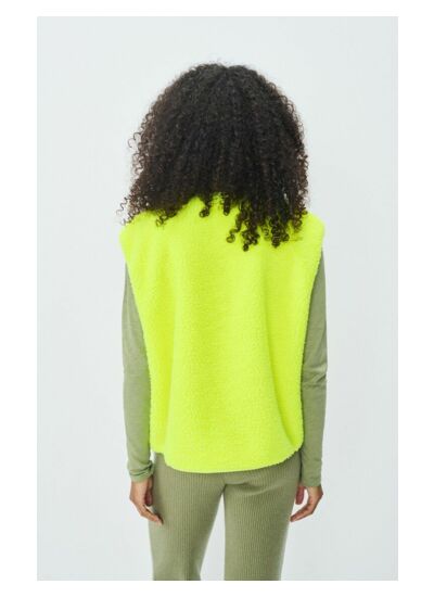 Oui, grâce à son tissu recyclé à effet shearling, cette veste sans manches offre une excellente isolation thermique tout en restant légère et confortable.