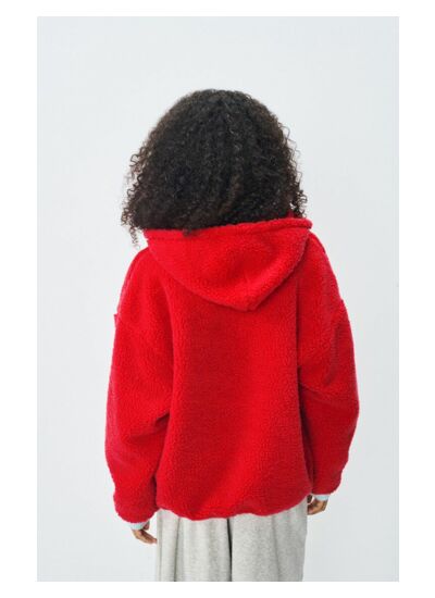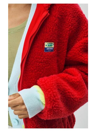 La veste est en matière effet shearling, offrant chaleur et douceur tout en restant légère et agréable à porter.