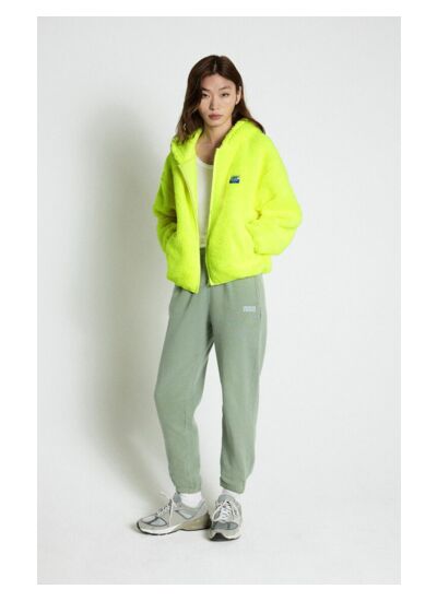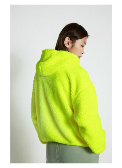 La veste est en matière effet shearling, offrant chaleur et douceur tout en restant légère et agréable à porter.