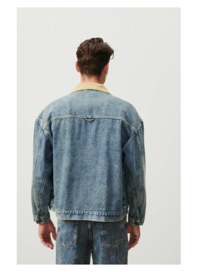 Pour préserver la qualité du denim et la forme de la veste, il est recommandé de suivre les instructions de lavage indiquées sur l’étiquette, généralement un lavage à froid et un séchage à l’air libre.
