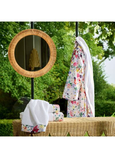 Le drap de bain mesure 90 x 150 cm, il est sublimé par une bande appliquée multicolore qui anime l’éponge blanche. Le tissu éponge de 550g/m², associé à la percale 80 fils, offre à la fois légèreté et une absorption idéale pour un moment de bien-être après chaque bain ou douche.