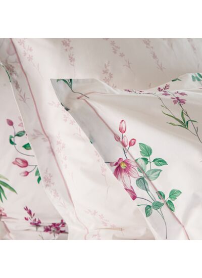 Transformez votre lit en un sanctuaire mythique avec notre housse de couette Aura. Conçue en percale de coton 80 fils, 100% coton biologique, elle offre une douceur supérieure pour des nuits paisibles. Les fleurs aériennes de gauras et de clématites, symboles de la brise du matin, s'animent sur un fond de percale blanche, vous invitant à vous blottir dans les bras d'Aura, la déesse de l'air frais. De l'autre côté, un feuillage léger ajoute une touche de mystère à votre rêve mythologique.