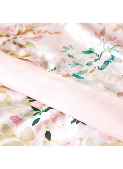 L'impression florale est sublimée par le satin 120 fils/cm² 100% coton offrant un support luxueux.