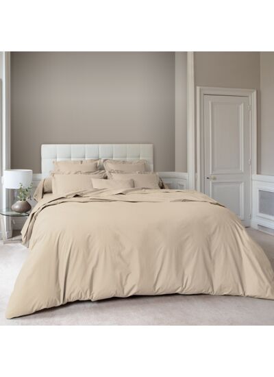 Cette housse de couette est composée exclusivement de percale 100% coton peigné longues fibres d'une densité de 80 fils/cm². Dotée ainsi d'une grande résistance, elle se caractérise par une parfaite longévité lui conservant ses qualités lavage après lavage. Ayant subi un traitement Easy care, elle rend le repassage facile. Sa finition bouteille permet une belle retombée de la couette sur le lit.