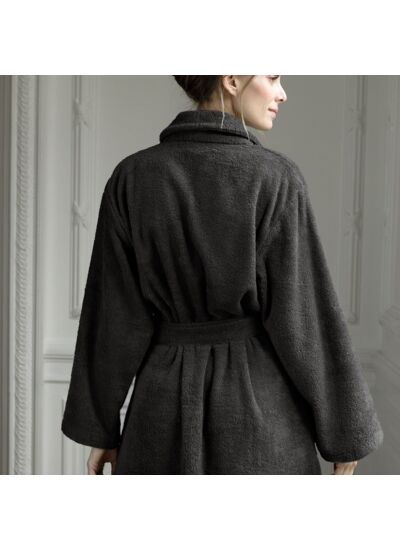On aime le peignoir de bain Anne de Solène Pétale Poivre au toucher à la fois doux et moelleux.