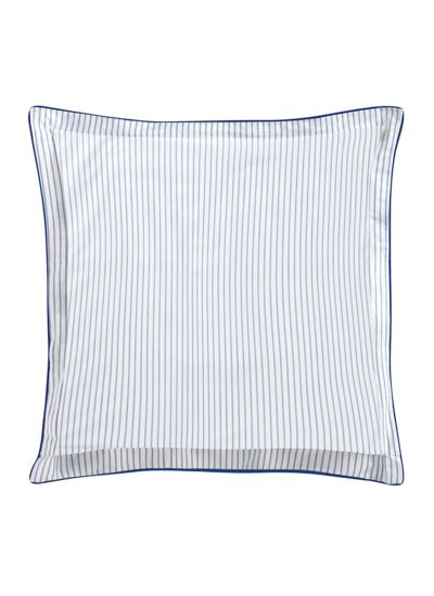 Le motif de toile de Jouy est réversible sur une rayure délicate avec une finition gros grain marine sur les taies disponibles en 2 tailles 65x65 et 50x75 cm. Un volant plat de 4 cm ajoute du caractère à ces taies.