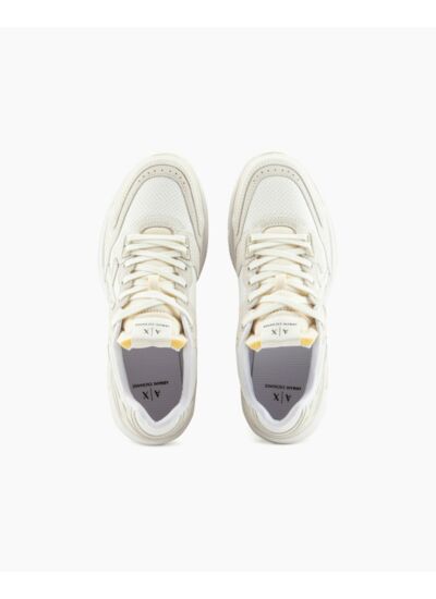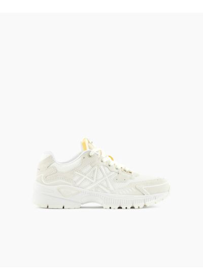 Affirmez votre style avec la sneaker Armani en cuir ivoire, un classique revisité pour un look contemporain et raffiné. Alliez élégance et confort au quotidien avec cette paire conçue pour durer.