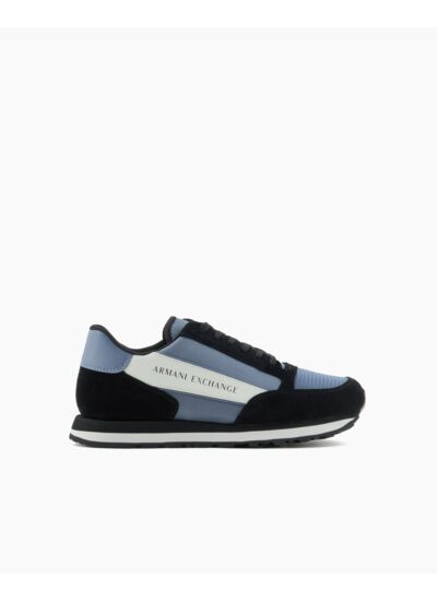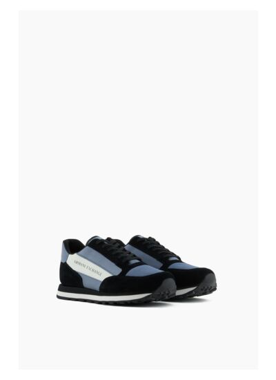 Affirmez votre style avec cette sneaker Armani alliant élégance et modernité. Le contraste noir et bleu apporte une touche dynamique à votre tenue, pour un look urbain et sophistiqué.