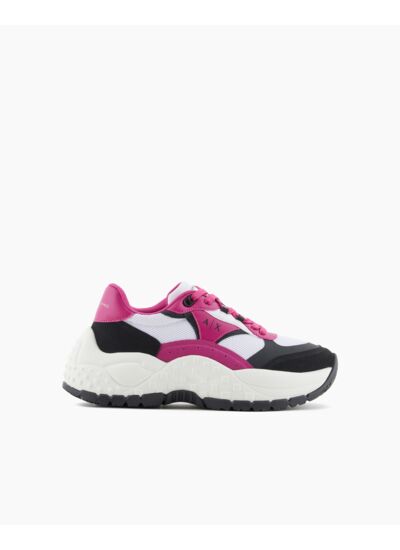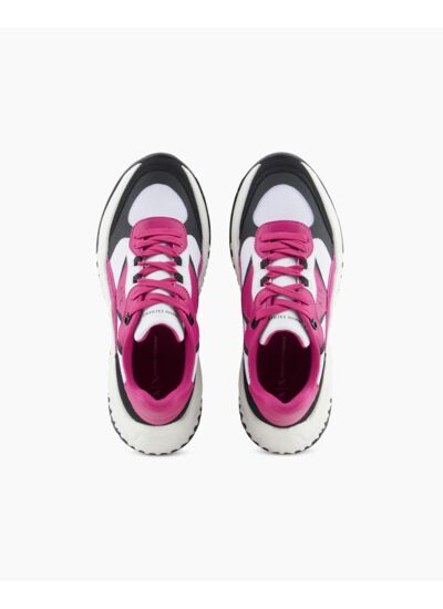 Conçues pour sublimer vos tenues urbaines, ces baskets marient un noir profond à des touches de rose subtil, créant un contraste dynamique et moderne. Leur design épuré reflète l’expertise d’Armani, offrant une silhouette à la fois sportive et raffinée, idéale du quotidien au weekend.