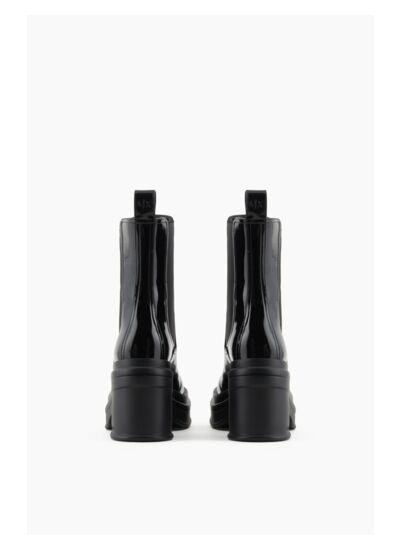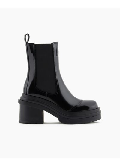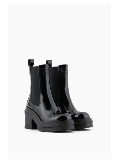 Matière : PU noir breveté. Marque : Armani. Type : botte de cheville. Couleur : noir. Fermeture : zip latéral. Semelle : antidérapante. Hauteur de talon : moyenne, adaptée à un usage quotidien.