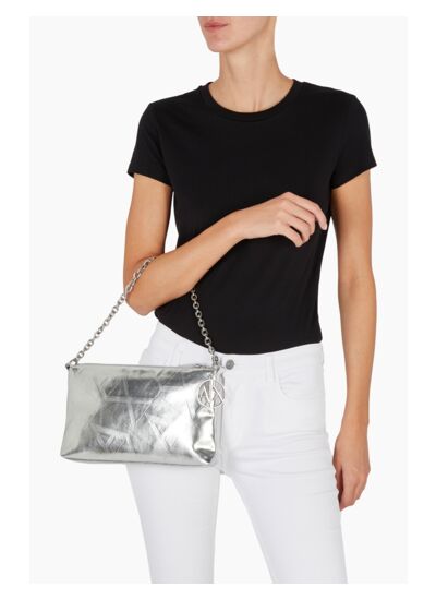 Réponse : Le sac présente une finition argentée élégante, subtile et brillante.