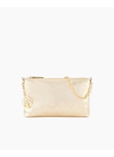 Dimensions et matériaux : sac en cuir or clair, fermeture zippée, bandoulière réglable, intérieur doublé avec poche plate. Format idéal pour smartphone, portefeuille et petits objets du quotidien.