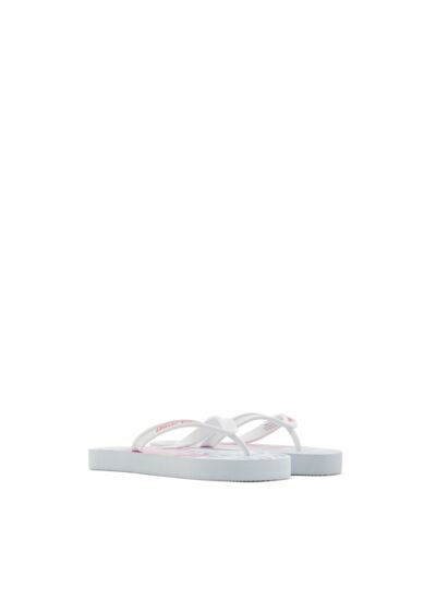 Fabriquées en caoutchouc, elles présentent une semelle antidérapante et un design imprimé allover fiore. Disponibles en blanc, elles incarnent la signature Armani avec sobriété et style.