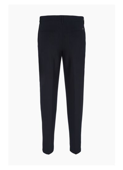 Fabriqué par Armani, ce pantalon marine présente une coupe droite, une taille classique et une fermeture zippée avec bouton. Les poches latérales et arrière ajoutent une touche pratique sans compromettre le style.