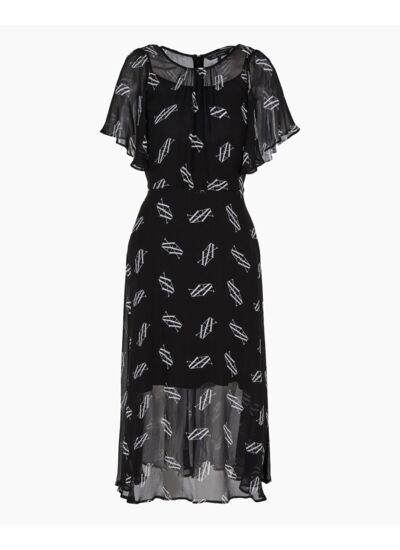 Cette robe vous garantit une allure raffinée sans effort, valorisant votre style avec discrétion et caractère. Son imprimé subtil ajoute une dimension graphique qui capte le regard, tandis que la teinte noire assure une polyvalence parfaite dans votre garde-robe.