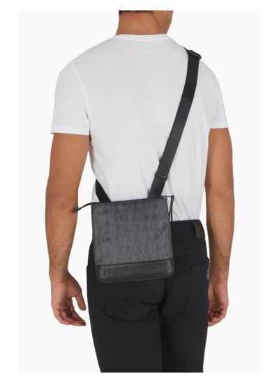 Marque : Armani. Modèle : Sac bandoulière plat homme. Couleur : asphalte/noir. Type : messenger bag. Matériaux et dimensions non communiqués.