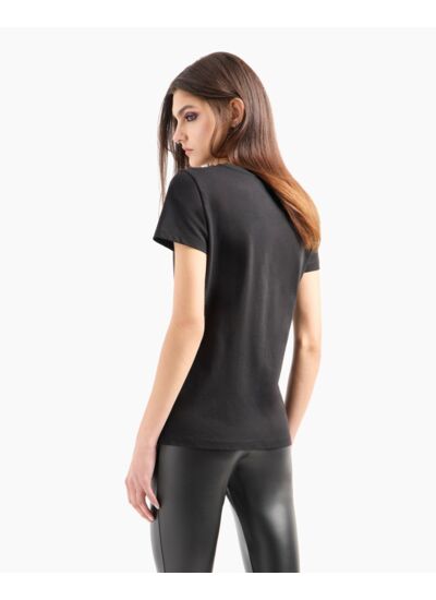 Confectionné dans un tissu doux et résistant, ce T-shirt offre une coupe ajustée qui épouse naturellement la silhouette. Son coloris noir profond s’adapte à toutes les occasions, du casual chic aux looks plus sophistiqués. La marque Armani signe ici un basique revisité, où chaque détail reflète un savoir-faire haut de gamme.