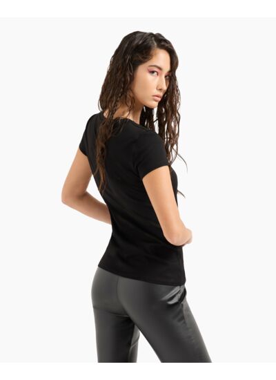 Confectionné dans un tissu doux et résistant, ce T-shirt offre une coupe ajustée qui épouse naturellement la silhouette. Son coloris noir profond s’adapte à toutes les occasions, du casual chic aux looks plus sophistiqués. La marque Armani signe ici un basique revisité, où chaque détail reflète un savoir-faire haut de gamme.