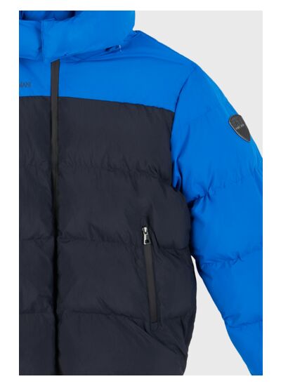 Ce bomber est doté d’une fermeture zippée frontale, de poches latérales pratiques et d’un col côtelé pour une meilleure tenue. La couleur bleu profond s’accorde facilement avec une large palette de vêtements.