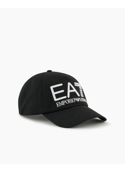 Casquette baseball unisexe en noir et blanc avec broderie, marque Armani. Taille ajustable pour un maintien optimal. Matière et détails techniques non spécifiés par la marque.