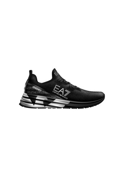 Affirmez votre style avec la sneaker Couteau de distance crusher, un équilibre parfait entre audace et élégance. Son design noir et argent incarne la modernité signée Armani, pour une allure résolument urbaine et sophistiquée.