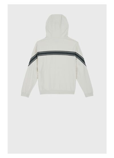 Réponse : Le sweatshirt est confectionné dans un mélange de coton premium, assurant confort et durabilité.