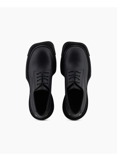 Fabriquée en cuir lisse noir, cette chaussure lacée présente une finition soignée typique de la maison Armani. Sa conception robuste et ses matériaux de qualité promettent longévité et résistance à l’usure.
