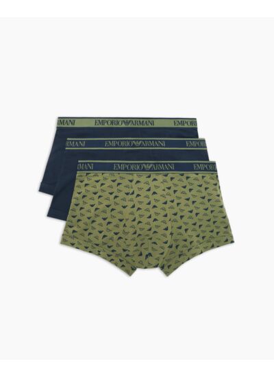 Lot de 3 tricots pour homme en tricot fin, coloris tr-marin, oliva et marine. Coupe droite, col rond, matière douce et résistante signée Armani. Lavage en machine recommandé à basse température.