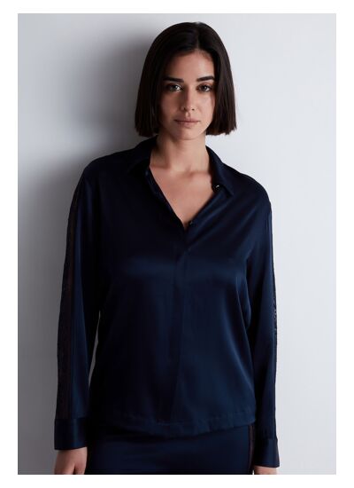 Comment porter ce chemisier pour un look polyvalent ? Grâce à sa coupe à manches longues et son ouverture boutonnée, il se porte aussi bien en pièce de nuit raffinée qu’en chemise de prêt-à-porter, s’adaptant à toutes vos envies de style.