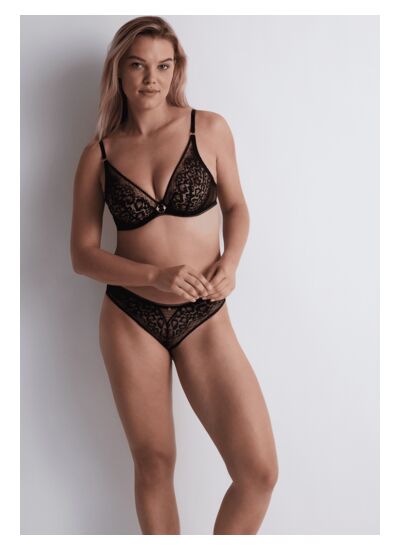 Entre dentelle élégante et tulle plumetis sexy, la collection Illusion Fauve déploie ses motifs peau de bête audacieux dans des modèles confortables et modernes. Offrant des jeux de transparence sensuels, elle se pare de détails dorés et graphiques résolument audacieux.