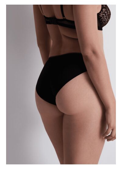 Quels sont les avantages spécifiques de ce modèle par rapport à une culotte classique ? Cette culotte brésilienne combine un style moderne avec une couvrance optimale, offrant un slip confortable qui ne marque pas sous les vêtements tout en sublimant la silhouette grâce à son dos travaillé.