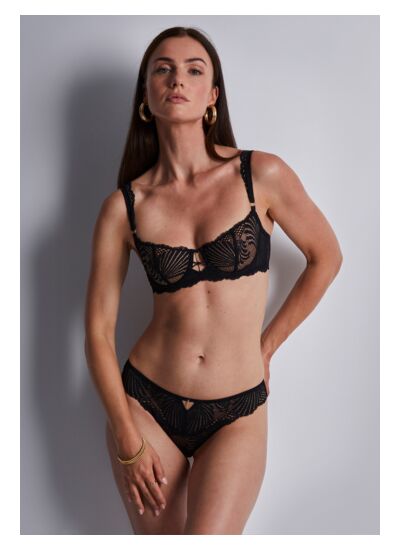Consultez le guide de taille AubadeModèle culotte, taille aux hanches, couvrante, au feston décoratif sur les fesses. Bénéfice : une culotte enrichie au dos.