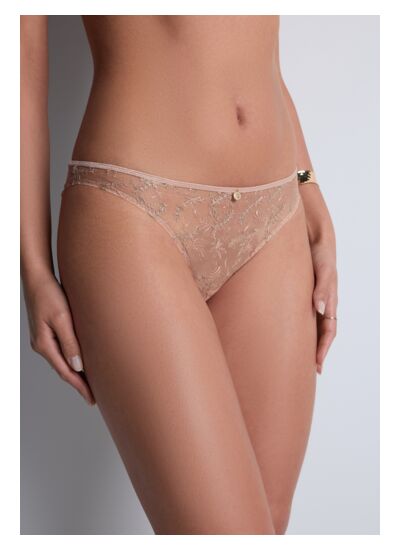 Consultez le guide de taille AubadeModèle culotte, taille aux hanches, couvrante, au feston décoratif sur les fesses. Bénéfice : une culotte enrichie au dos.