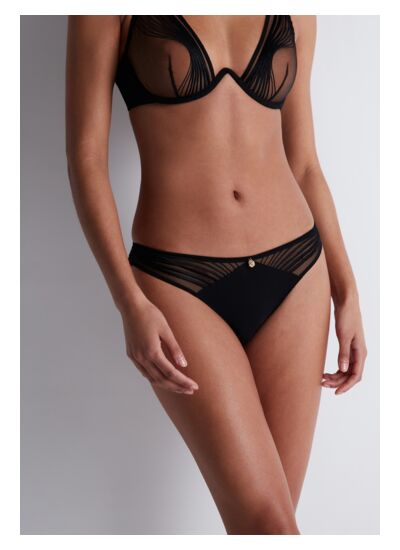 Consultez le guide de taille AubadeModèle culotte, taille aux hanches, couvrante, au feston décoratif sur les fesses. Bénéfice : une culotte enrichie au dos.