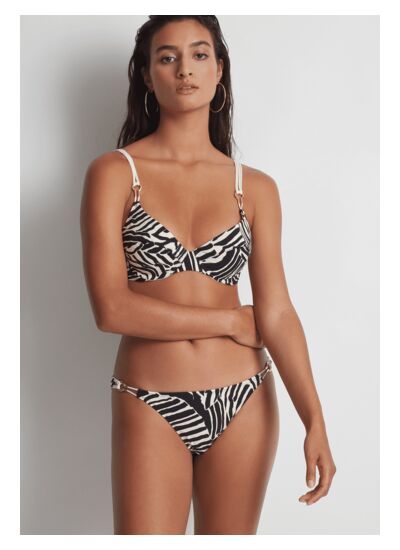 Quelle est la particularité du haut de maillot de bain Triangle Savannah Mood ? Ce haut de maillot de bain se distingue par sa forme triangle sans armature, offrant un maintien naturel et un confort optimal. Certains modèles intègrent une petite baleine latérale pour un soutien renforcé sans rigidité.