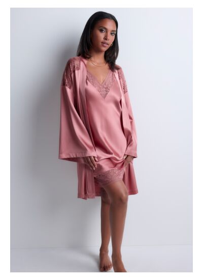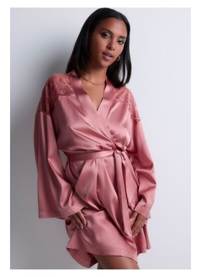 Quelle couleur et marque caractérisent ce kimono ? Ce kimono est signé Aubade, une marque reconnue pour son savoir-faire, et se décline dans un rose délicat, parfait pour une allure féminine et sophistiquée.