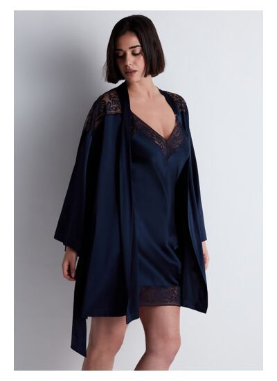 Le kimono Midnight Whisper est-il adapté au nightwear comme au loungewear ? Oui, cette pièce à jambe longue est conçue pour offrir confort et élégance aussi bien pour la nuit que pour des moments de détente à la maison. Sa coupe peut être droite ou ample selon votre préférence, garantissant une liberté de mouvement optimale.