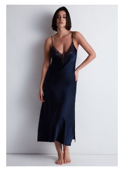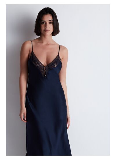 Comment entretenir la nuisette longue Midnight Whisper ? Pour préserver la qualité des tissus et la couleur bleu profond, privilégiez un lavage à la main à l’eau froide ou un cycle délicat en machine, sans javel ni sèche-linge.