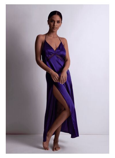 Comment se porte la nuisette longue Silk Desire ? Sa coupe longue jusqu’aux chevilles assure un tombé fluide et sophistiqué, idéal pour un look à la fois chic et sensuel, parfait pour des soirées intimes ou des moments de détente raffinés.