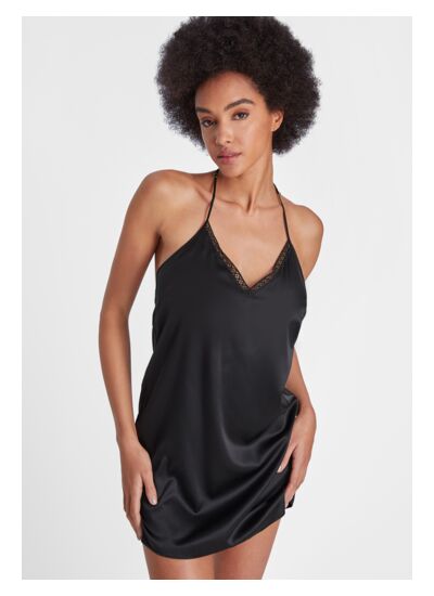 Cette nuisette est conçue en soie, garantissant douceur, légèreté et un toucher luxueux sur la peau.