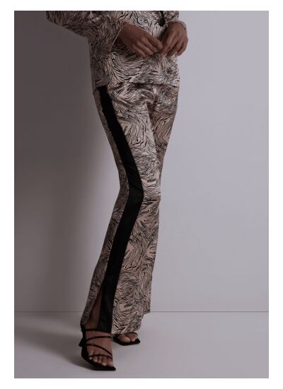 Smocky Night est une nouvelle ligne en soie imprimée dans un esprit smocking très chic. L’association de la soie imprimée avec des bandes de soie unie structure la silhouette à travers des formes modernes et élégantes. L’imprimé à l’esprit animal dans les tons nude contrastés de bandes unies noires est à la fois sexy et élégant !