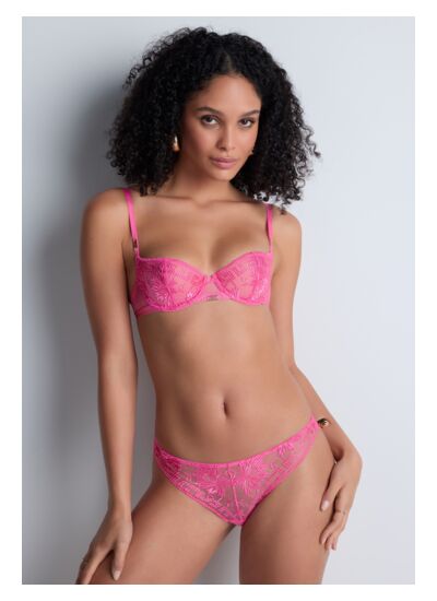 Grâce à ses coutures verticales et sa forme pigeonnante, il rehausse et projette la poitrine pour un décolleté ouvert, arrondi et rebondi, sublimant la silhouette avec élégance et sensualité.